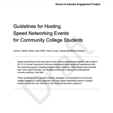 These 21-page guidelines "provide methods, strategies, and templates for community college programs to easily implement and host speed networking events to support student recruitment and retention in their technical education programs." The guidelines were developed from biotechnology speed networking events held at City College of San Francisco, Austin Community College, and Johnston Community College, and provide a step-by-step guide for each phase of the speed networking process. Included are the following sections: