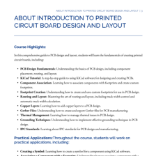 - Understand the fundamentals of PCB design, including component placement, routing, and layout
