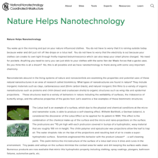 Is nanotechnology present in our everyday lives? This is the question the website looks to address. Presented by the National Nanotechnology Coordinated Infrastructure, this page highlights many aspects of nanotechnology that we experience on a daily basis. Such things as a moth’s eye or a butterfly’s wing do not immediately conjure up ideas about nanotechnology, but this demonstration will change that. Many natural marvels give engineers ideas about new technology and even how to better use current. Even though brief, this site examines an important, and mostly overlooked, area of nanotechnology.