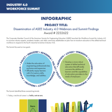 This collection includes three documents and twelve video clips that summarize the results of the Workforce Summit for Industry 4.0 launched by the Corporate Member Council of the American Society for Engineering Education (ASSE). The Workforce Summit for Industry 4.0 brought together "experts, academic leaders, and other community stakeholders to plan how to transform education of the skilled technical workforce to respond to the fourth industrial revolution." The 3-page infographic, 4-page executive summary/policymaker's briefing, and the 8-page white paper each provide an overview of the summit in varying detail. The documents introduce the summit and discuss its goals, themes, key recommendations for technician education, and examples of promising instructional models for training skilled technical workers. Additionally, the white paper discusses the findings of summit meetings and summarizes the webinars that led up to the summit. The video clips run from three to ten minutes and...