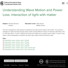 This lab, presented by the National Nanotechnology Coordinated Infrastructure, covers the concept of wave properties. During this lab, students will learn how light waves interact with matter. The activity is "analogous to light traveling through optical media having different indices of refraction (densities)." Teacher Preparation Guides, Student Guides, and Next Generation Science Standards applicable to the lesson are included.
