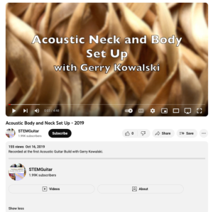 This video, from the STEM Guitar Project, was recorded at the first Acoustic Guitar Build Institute that was held at Hanford High School in 2019. During this part of the workshop, Gerry Kowalski makes sure participants have completed all the necessary steps of building the guitar before the neck and body are put together. Kowalski discusses ensuring the tuners are located in the correct orientation, adjusting the truss rod so that the neck is straight, checking the saddle, and more. This video runs 4:48 minutes in length. Additional videos from the workshop cover neck angle and shims, checking the height and angle of the guitar strings, and stringing the guitar. These videos are available to view separately.