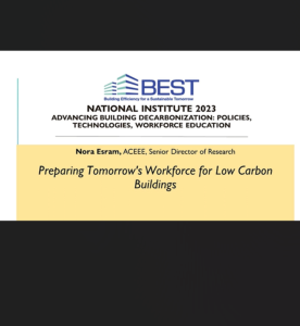 This presentation, provided by the Building Efficiency for a Sustainable Tomorrow (BEST) Center, is from the BEST Center's 2023 Annual Institute and covers building a sustainable workforce for a sustainable future. During this video, the presenter discusses the following questions: