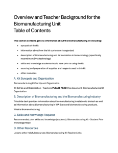 - Biomanufacturing Kit - A - Overview and Teacher Background