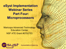 These webinar slides, provided by Maricopa Advanced Technology Education Center (MATEC), accompany a webinar that was recorded January 29, 2010. The webinar was presented by Thomas McGlew, eSyst Project Manager. The eSyst project was "conceived to address the systems view of electronics to meet...