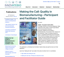 This Bio-Link webpage includes information about Making the Call: Quality In Biomanufacturing Participant and Facilitator Guide that is intended to support the interactive video production of the same name. The purpose of the video "is to prepare students to work in a regulated biomanufacturing...