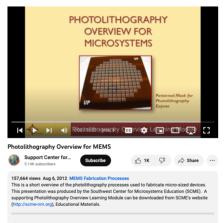 This video, created by Support Center for Microsystems Education (SCME), provides an overview of the photolithography. The lecture runs for 12:02 seconds and covers photolithography as a part of the MEMS fabrication process, including the steps of production. More information can be found on the...