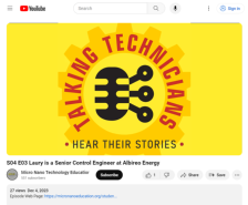 This episode of the Talking Technicians podcast, from the Micro Nano Technology Education Center (MNT-EC), features an interview with Laury, a senior control engineer at Albireo Energy. During the interview, Laury provides an overview of building automation control and the duties of a senior control...