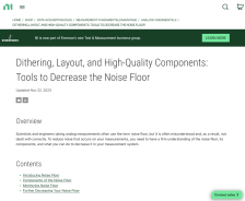 This tutorial is provided by National Instruments and introduces users to the term noise floor. The tutorial includes a table of contents and the following sections: Introducing Noise Floor, Components of the Noise Floor, Minimizing Noise Floor, Further Decreasing Your Noise Floor, and Relevant NI...