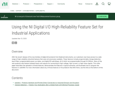 This resource discusses using the National Instruments digital I/O high-reliability feature set for industrial applications. "This white paper describes the operation of these features, demonstrates the features in typical scenarios, and illustrates how to program the features in LabVIEW." This...