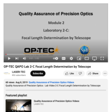 This video, published by the National Center for Optics and Photonics Education (OP-TEC), is from module one of the Quality Assurance of Precision Optics course, which "provides an introduction to quality assurance practices required to identify, inspect, and measure optical components." During the...
