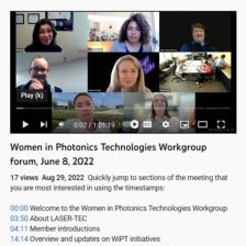 This video is a recording of a virtual forum that explores the perspectives and experiences of women professionals in the photonics technologies field. In the video, the Women in Photonics Technologies (WiPT) forum's history, background, and recent projects are highlighted. Forum participants then...