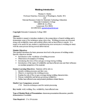 This five-page instructor guide from Edmonds Community College provides a lesson plan introducing students to foundational metal welding concepts. The lesson demonstrates welding techniques using video clips, and introduces welding processes, issues, and effects. Students learn about the basic...