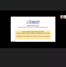 This presentation, from the Building Efficiency for a Sustainable Tomorrow (BEST) Center, is from the BEST Center's 2022 Annual Institute. Presenters Alexandra von Meier and Therese Peffer discuss the Ecoblock project, which aims to combine energy efficiency with a 100% solar microgrid at the...