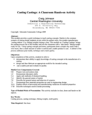 This eight-page instructor guide from Edmonds Community College outlines a one-hour laboratory activity demonstrating casting concepts. Students design and fabricate a clay mold to cast a usable fishing weight, or "casting sinker." This activity demonstrates how "materials properties are used in...