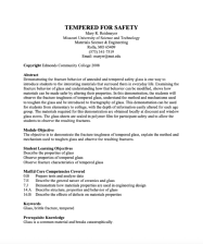 This seven-page instructor guide from Edmonds Community College provides a lesson plan on tempered safety glass. In this activity, the instructor demonstrates the fracture toughness of tempered glass. This demonstration shows how glass is toughened and introduces the concept of the fractography of...
