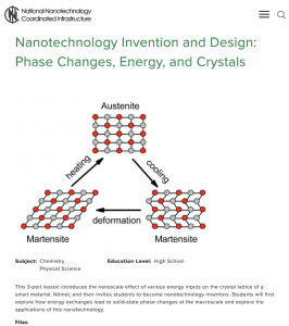 In this lab, presented by the National Nanotechnology Coordinated Infrastructure, students will "explore how energy exchanges lead to solid-state phase changes at the macroscale and explore the applications of this nanotechnology." Additionally, students will have the opportunity to examine "various...