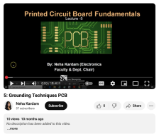 This video was created by Neha Kardam and is part of a series of lectures on printed circuit board design using Ki-CAD software. During this lecture, Kardam covers star grounding, analog and digital separation, ground planes, and slotted ground planes. The lecture examines the theory and practical...