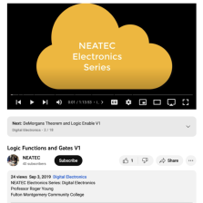 This video, made available by the Northeast Advanced Technological Education Center (NEATEC), is part of the NEATEC Digital Electronics Series from Professor Roger Young. This video describes logic function and gates and runs 1:13:53 minutes in length.