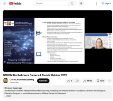This webinar recording from the National Center for Next Generation Manufacturing (NCNGM) focuses on careers and trends in mechatronics. During the webinar, presenters discuss a high school mechatronics program developed by Central Community College with help from industry partners. The presenters...