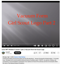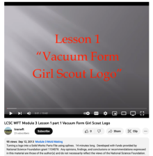 This video is part of a series of mold making training modules by Lewis-Clark State College. This series of modules covers how to make simple molds using SolidWorks CAD software and how to modify the molds to improve performance. This video provides an initial outline of the vacuum mold process....