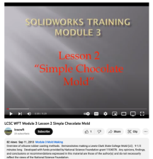 This video is part of a series of mold making training modules by Lewis-Clark State College. This series of modules covers how to make simple molds using SolidWorks CAD software and how to modify the molds to improve performance. This video is the second part of a lesson that teaches students how to...