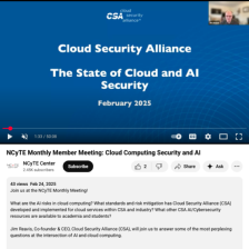 This video from the National Cybersecurity Training and Education (NCyTE) Center features a presentation by Jim Reavis, co-founder and CEO of Cloud Security Alliance (CSA). This presentation provides an overview of current issues at the intersection of artificial intelligence (AI) and cloud...